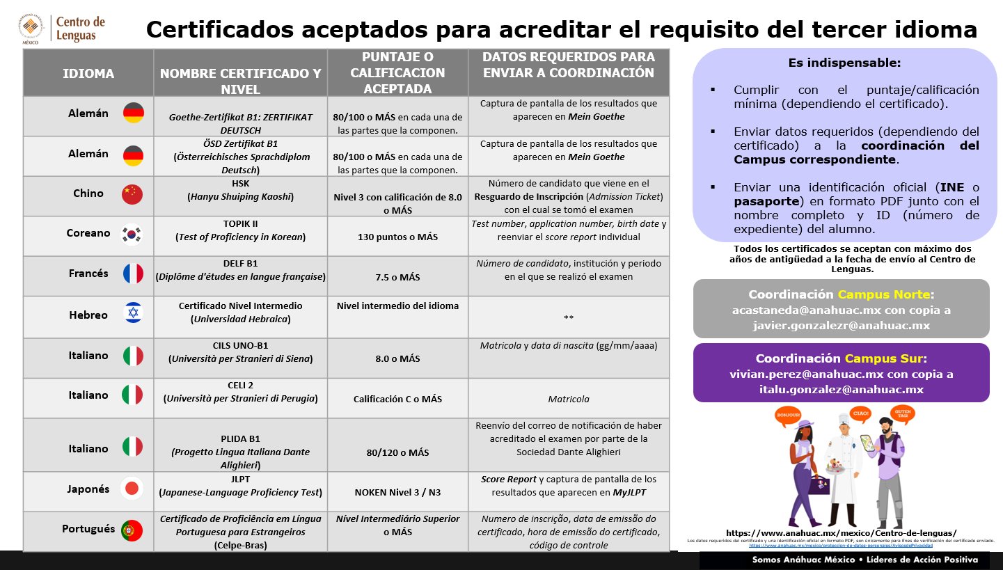 No se aceptan certificados oficiales de idiomas realizado en línea o que hayan hecho uso de la opción "retake" para la acreditación de alguna de las habilidades.