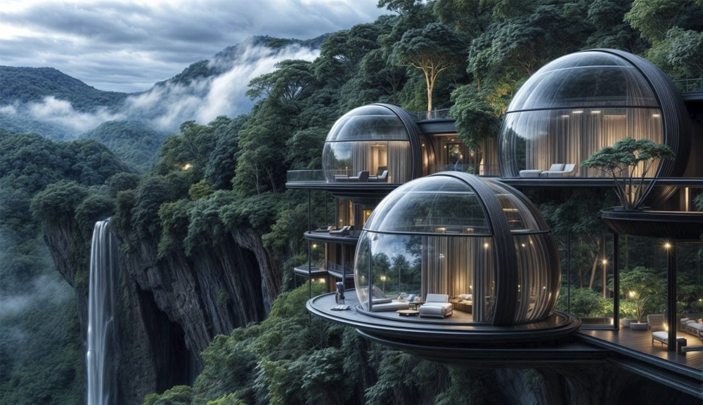 Concebido para integrarse en un acantilado de la Selva Lacandona, “NIMA” fusiona sustentabilidad, innovación tecnológica y cultura local. Sus cápsulas de cristal elevadas ofrecen vistas de 360°, girando con el sol para regular la temperatura, mientras que los paneles solares, sistemas de refrigeración por agua y diseño de bajo impacto promueven una experiencia regenerativa. Además, el proyecto contempla la colaboración con comunidades lacandonas para ofrecer experiencias de bienestar, gastronomía local y programación cultural.