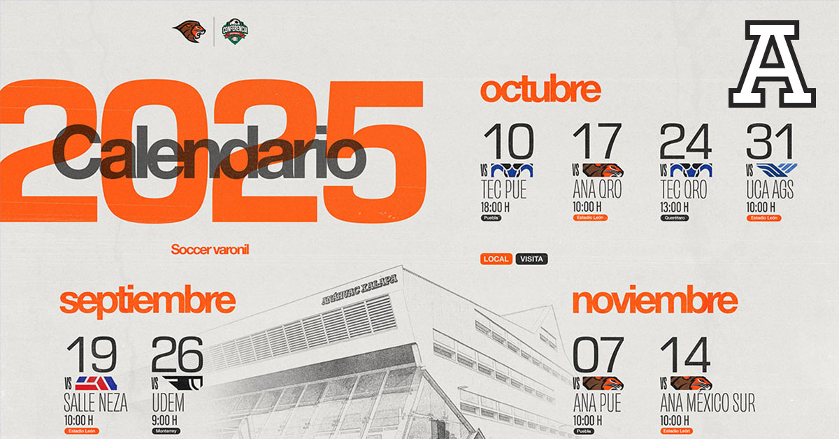 Xalapa, Ver. — Los Leones Anáhuac Veracruz campus Xalapa, ya conocen el calendario oficial de la temporada 2025-2026 de la Conferencia Nacional de Fútbol Soccer de la Comisión Nacional Deportiva Estudiantil de Instituciones Privadas (CONADEIP).