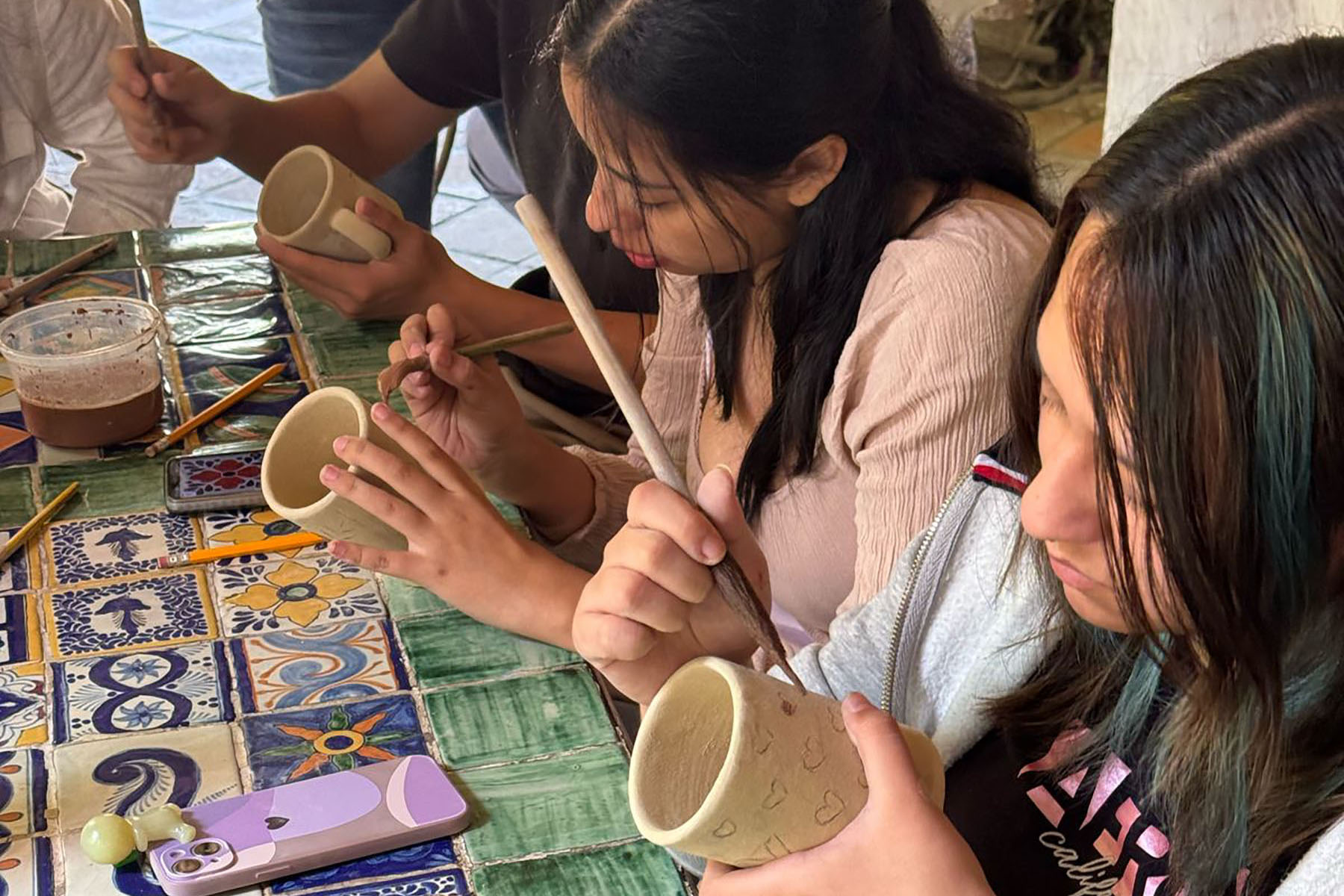 Durante el recorrido, los jóvenes se adentraron en el complejo y delicado proceso artesanal que da vida a la auténtica Talavera, una técnica milenaria que forma parte del patrimonio cultural de México y cuenta con denominación de origen. La jornada comenzó con una introducción a las materias primas, donde los estudiantes pudieron conocer, tocar y manipular el barro natural extraído de regiones específicas que cumplen con estrictos estándares de calidad.