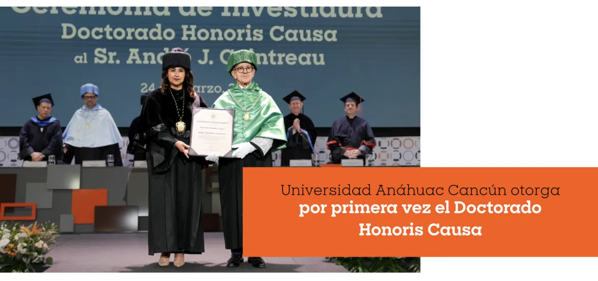 Un momento histórico marcó la vida académica de la Universidad Anáhuac Cancún, al otorgar por primera vez en su historia el Doctorado Honoris Causa, la máxima distinción académica que reconoce trayectorias ejemplares y aportaciones significativas al desarrollo de la sociedad, la cultura y el conocimiento.