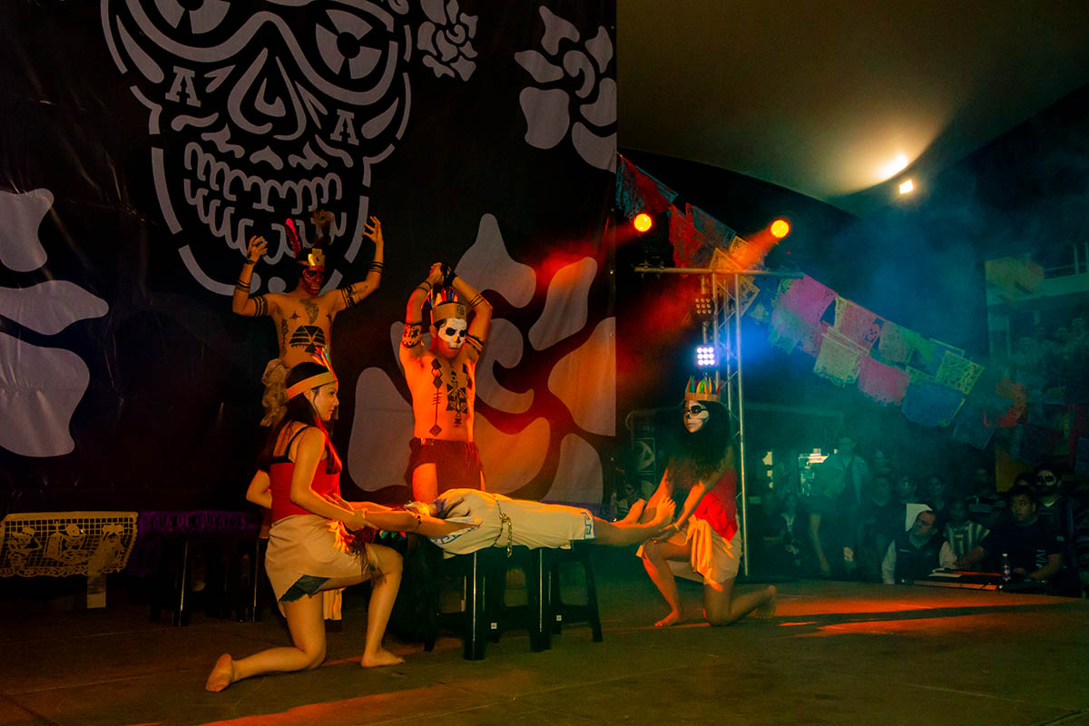 "Las penas con pan son buenas", dice un conocido refrán, y si es pan de muerto acompañado de una taza de chocolate caliente, mucho mejor. Una de las noches más divertidas del año, donde las compañías de baile y teatro acompañadas por el Ensamble Anáhuac, dejaron en claro el gran talento de nuestros estudiantes. Así, con baile, música y actuación, logramos disfrutar de un paseo por la historia de México, destacando la presencia de la muerte en nuestra cultura, desde la época prehispánica hasta la actualidad.