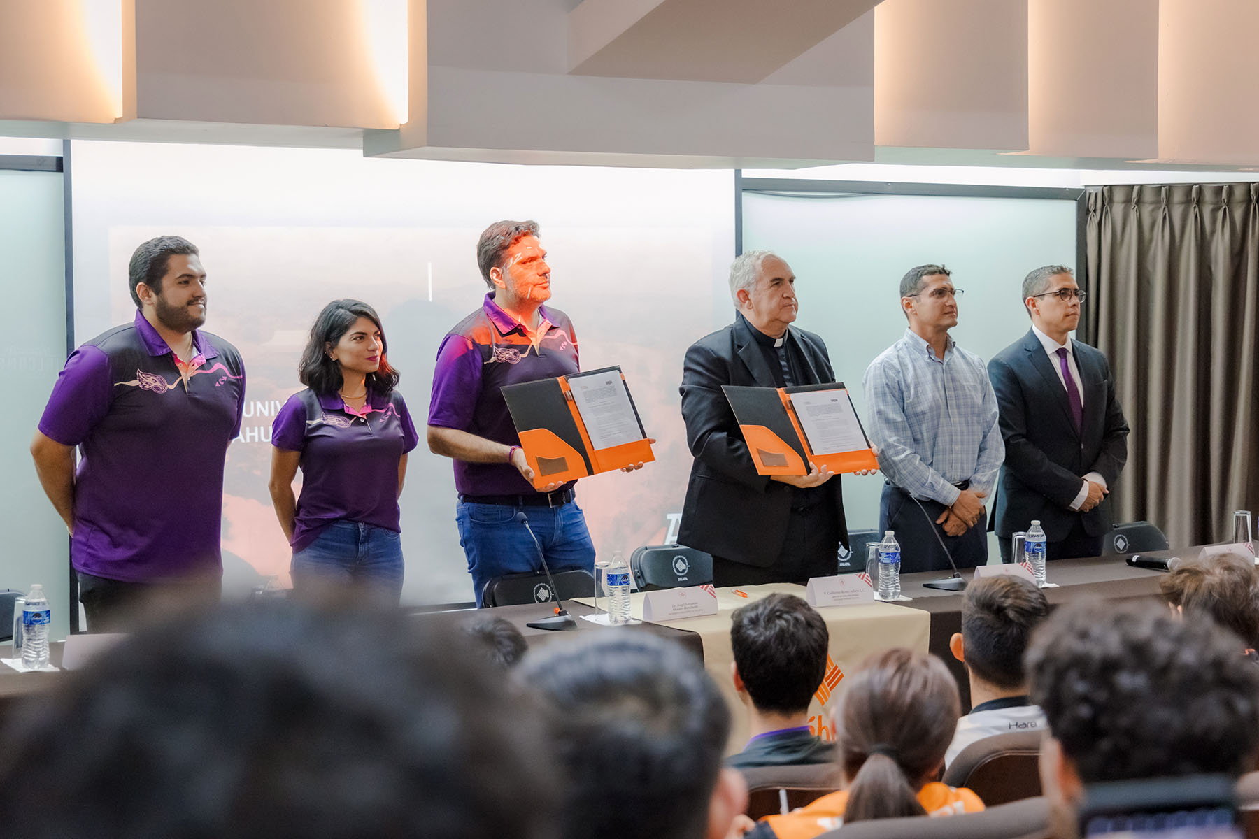 El acto protocolario fue presidido por el P. Guillermo Romo Atilano, Director de Formación Integral de la Universidad, y el Lic. Ángel Fernando Morales Blanchetth, Presidente del Club Halcones de Xalapa. También estuvieron presentes autoridades universitarias, como el Mtro. Juan Bernardo Uribe Amador, Apoderado Legal, y el Mtro. David Enríquez Murrieta, Coordinador de Deportes de la Universidad. Por parte del Club Halcones, nos acompañaron la Mtra. Samia Beyruti García, Directora General, y el Lic. Félix Antonio Cortés Pérez Díaz, Responsable del Departamento de Capacitación.